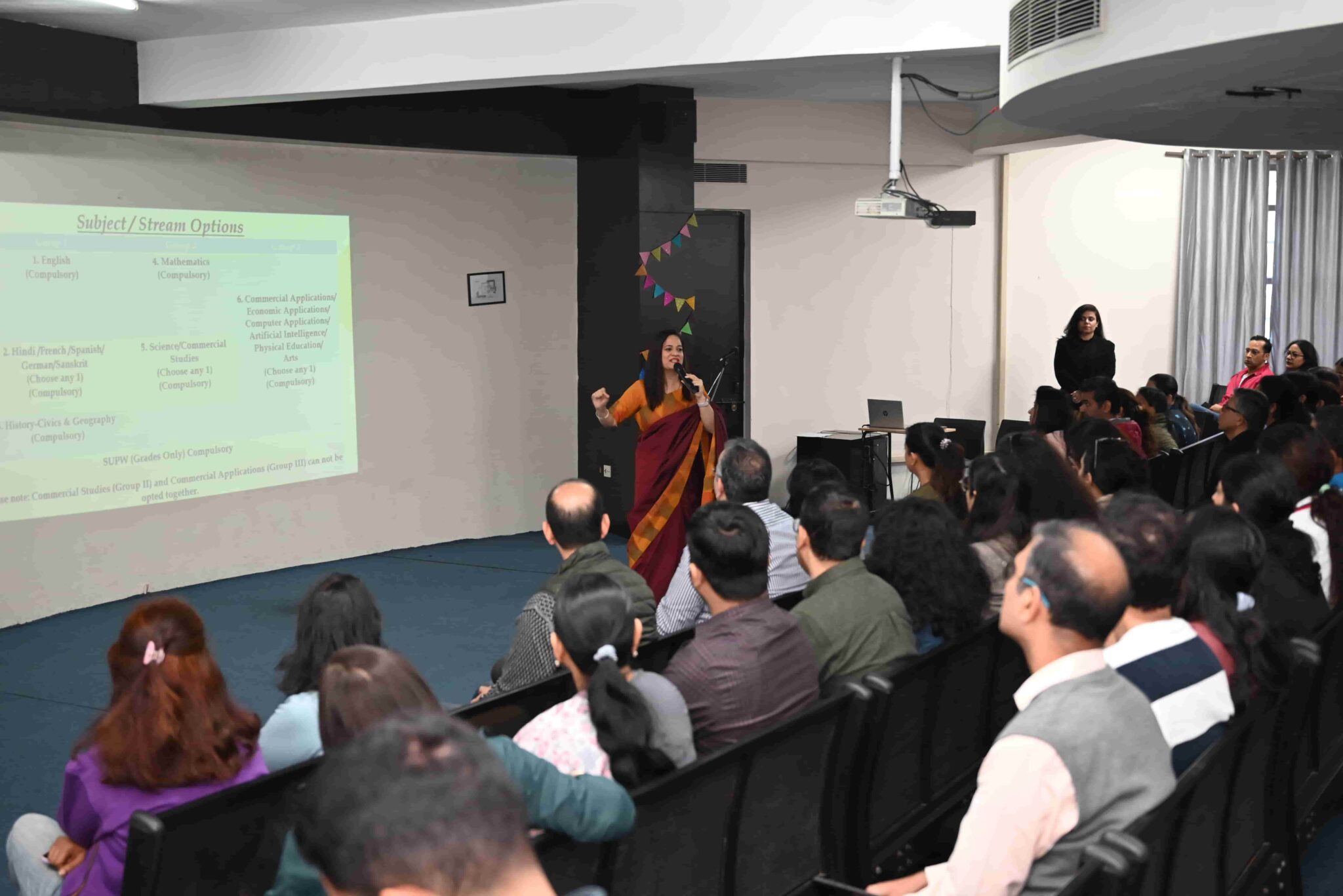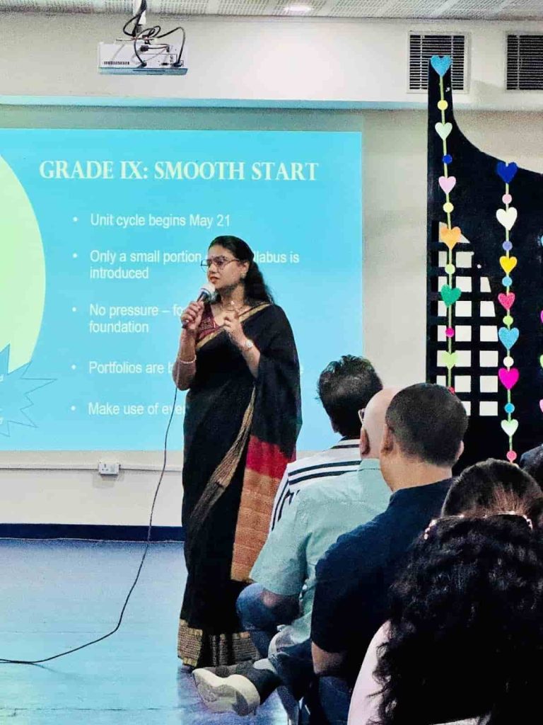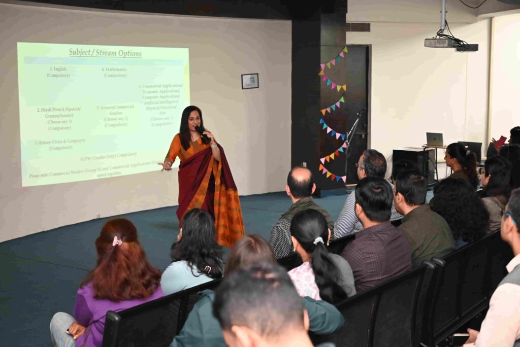 Hosted by Ms Barkha Anand, ICSE and ISC Curriculum Head, the session witnessed active participation from parents. The meeting aimed at providing a clear understanding of subject combinations, academic pathways, and assessment structures for Grades IX–X.
