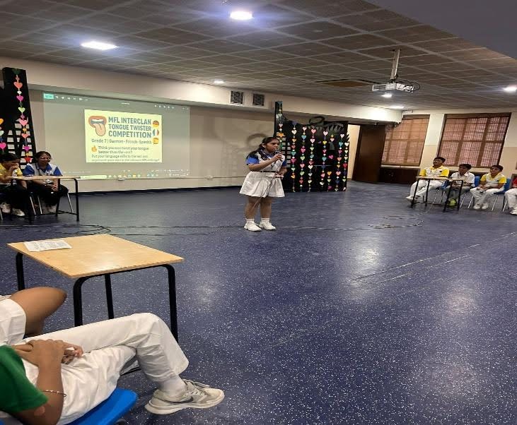 The Inter-Clan Poem Recitation Competition for Grade 7 students was conducted by the MFL Department in the MPH on 2nd December 2025. The students participated with great enthusiasm and confidently presented their poems. The main aim of this competition was to improve the speaking skills of the students. Poem recitation not only requires good language skills but also the ability to express feelings and emotions. Through this event, students practiced better pronunciation and clear expression, which will support them in their future studies and daily life. This competition also helped them build self-confidence, improve communication and public speaking skills, and learn how to perform well under pressure.