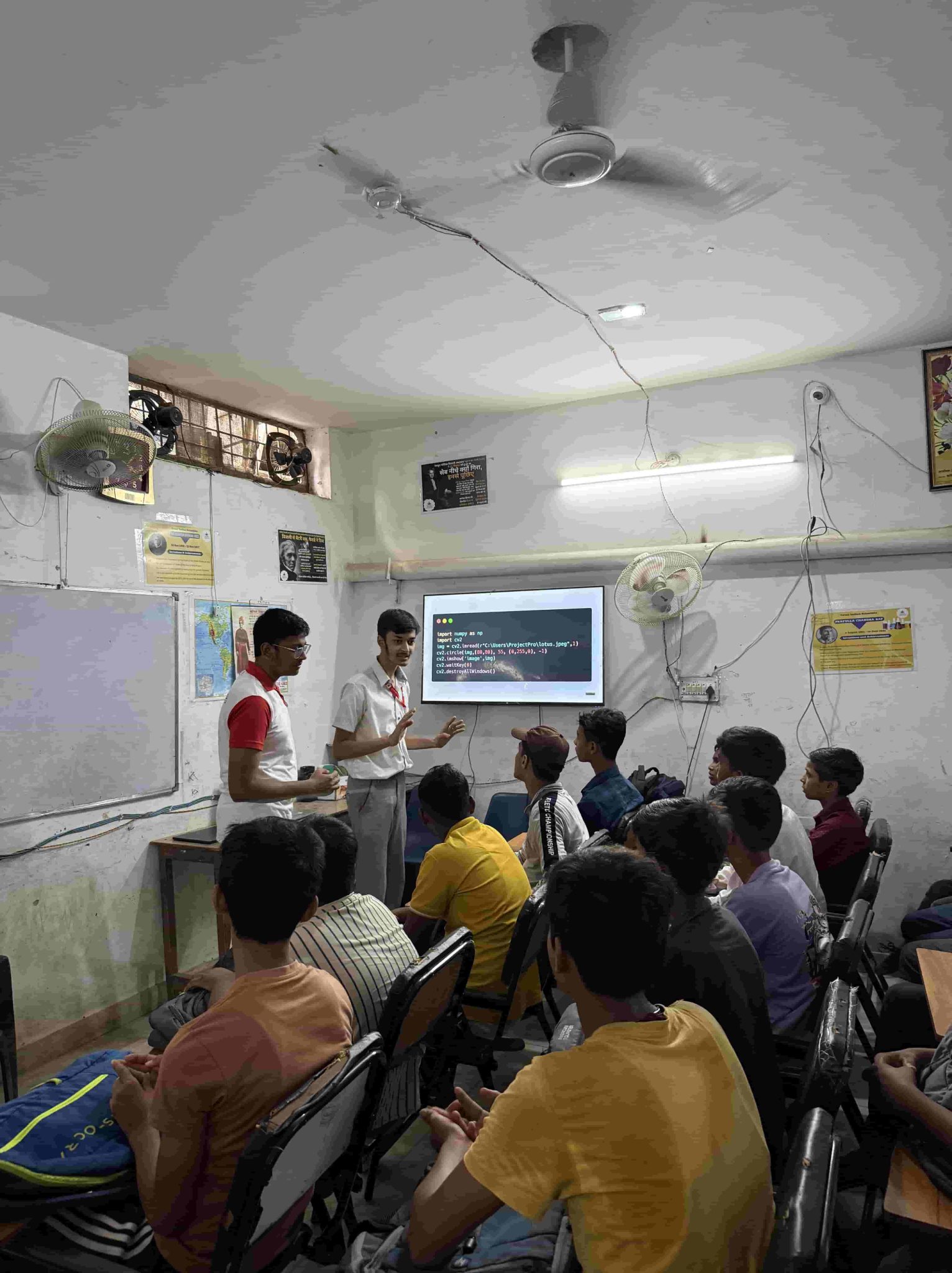 Representatives from Avishkaar conducted expert talks and hands-on workshops on robotics with the students of Middle School. In these workshops, students got hands-on experience on building a robot and running its functioning using a battery system.