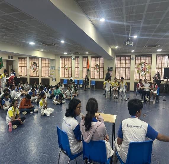 गुरुग्राम स्थित स्कॉटिश हाई इंटरनेशनल स्कूल के हिंदी विभाग द्वारा कक्षा ग्यारहवीं और बारहवीं के विद्यार्थियों के लिए एक रचनात्मक एवं वाचन कौशल गतिविधि पर आधारित मोनोलॉग प्रतियोगिता का आयोजन दिनांक 7 मई 2025 को विद्यालय परिसर में किया गया। इस प्रतियोगिता का उद्देश्य विद्यार्थियों की सृजनात्मकता, प्रस्तुतीकरण कौशल और भाषा-प्रयोग में दक्षता को प्रोत्साहित करना था। प्रतियोगिता में निर्णायक मंडल के रूप में श्रीमती वीना सिन्हा तथा श्री विकास शर्मा उपस्थित रहे, जिन्होंने निष्पक्षता और गहन दृष्टिकोण के साथ प्रतिभागियों के प्रस्तुतीकरण का मूल्यांकन किया। विद्यार्थियों को हिंदी की किसी साहित्यिक कृति के एक पात्र या किसी साहित्यिक कृति पर आधारित फिल्म के एक पात्र के संवाद को तैयार कर मंच पर प्रस्तुत करना था। मूल्यांकन के मुख्य आधार उच्चारण, विषयवस्तु और प्रस्तुतीकरण थे । प्रतियोगिता में चारों वंशों से चयनित विद्यार्थियों ने उत्साहपूर्वक भाग लिया और सभी प्रतिभागियों ने पूर्ण आत्मविश्वास के साथ प्रस्तुति दी। प्रतियोगिता में वंश एंडरसन से वेदिका बंसल और चयन गुप्ता ने, वंश बॉयड से हर्ष कश्यप और अन्विता चक्रवर्ती ने , वंश लैमोंट से गौरीशा एंजेल सिंह और अर्जुन गाबा तथा वंश मैकआर्थर से दिया जुनेजा और श्रेयस टोडी ने भाग लिया। प्रतियोगिता में वंश लैमोंट की गौरीशा एंजेल सिंह को प्रथम , वंश बॉयड के हर्ष कश्यप को द्वितीय और वंश मैकआर्थर की दिया जुनेजा ने तृतीय स्थान प्राप्त किया।