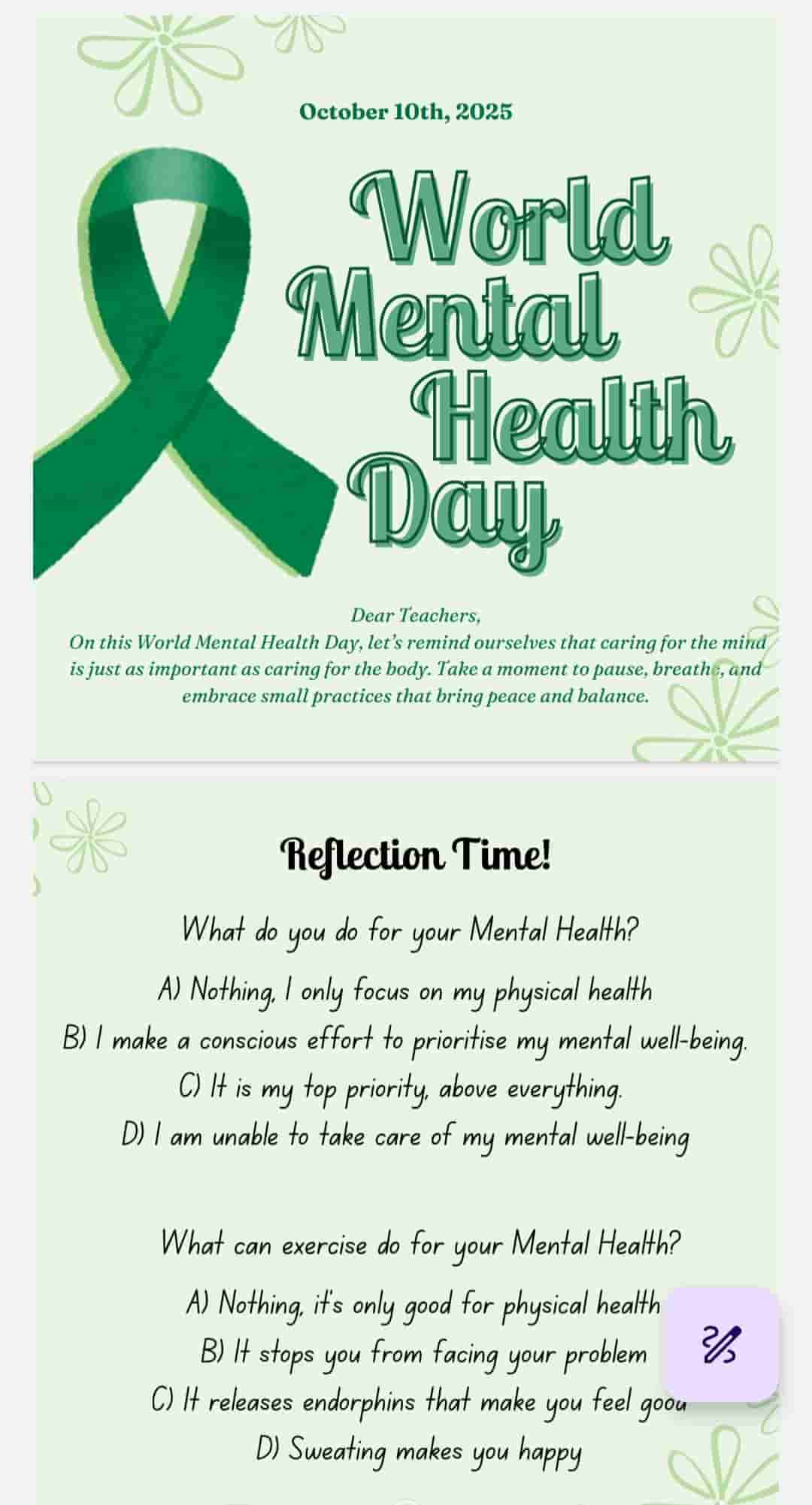 Primary students participated in a meaningful well-being activity by creating creative and thoughtful bookmarks. They illustrated their bookmarks with artistic designs and added insightful quotes that reflected positive thinking and the importance of maintaining well-being. Through this activity, the young Highlanders demonstrated strong self-management skills as they carefully planned, organized, and designed their bookmarks with creativity and attention to detail.
