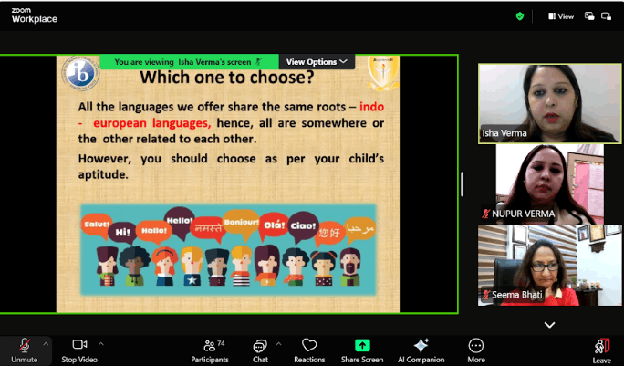 To assist students in making an informed decision aligned with their interests and future academic pursuits, the Additional Language Orientationwas conducted online on Saturday, 24 January 2026, for the Highlanders and parents of Grade III. The primary objective of the orientation was to guide parents and students in selecting a third languagefromSpanish, French, German, and Sanskrit. The session aimed to provide a comprehensive overview of the languages offered, their cultural relevance, classroom pedagogies, and the long-term academic and cognitive benefits associated with learning each language. The orientation proved to be insightful and enriching, empowering parents and students to make well-informed choices.