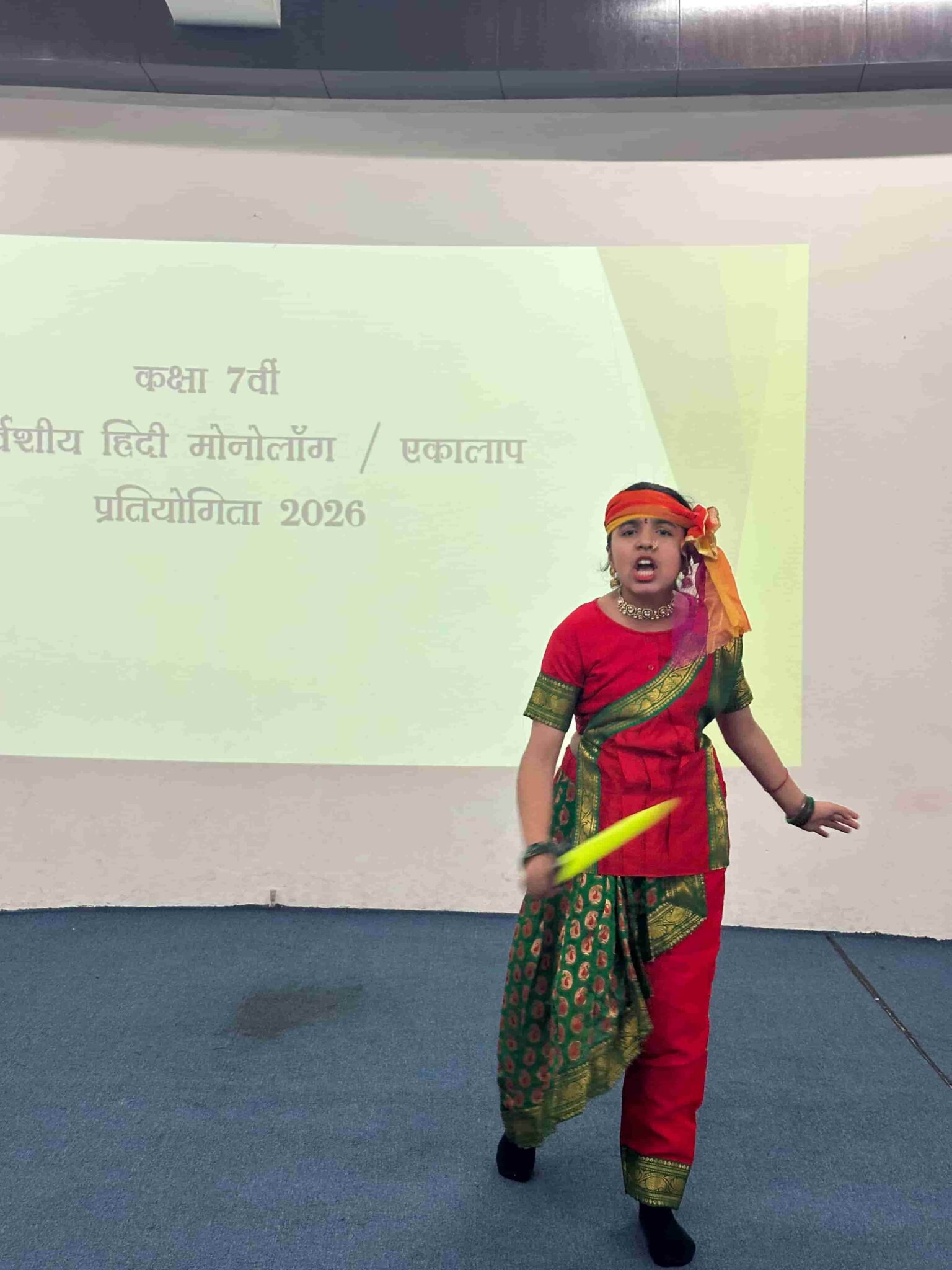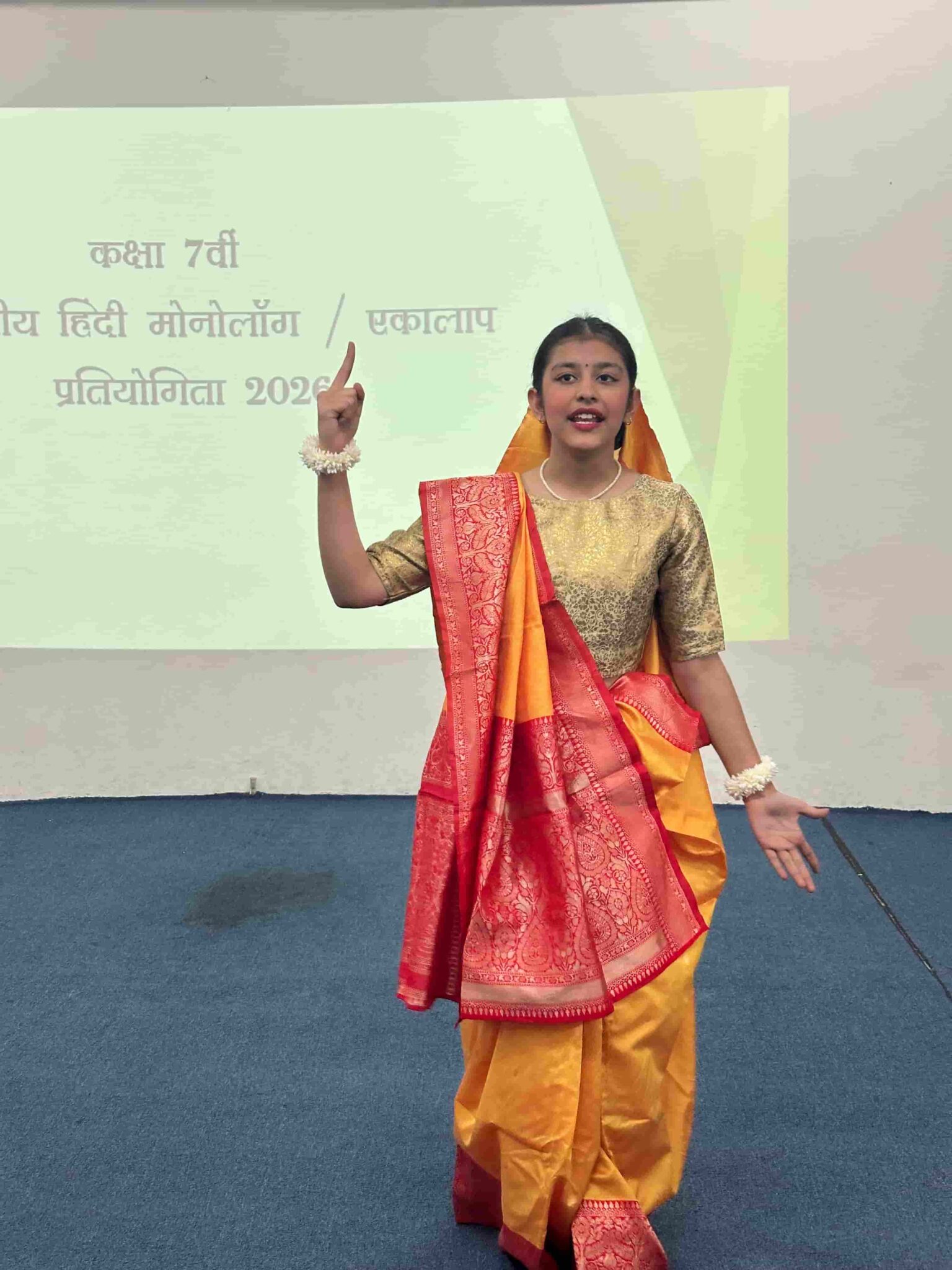 स्कॉटिश हाई इंटरनेशनल स्कूल में कक्षा 7 वीं के विद्यार्थियों के लिए हिंदी ‘मोनोलॉग / एकालाप’ प्रतियोगिता का सफल व सार्थक आयोजन किया गया। इस प्रतियोगिता में कक्षा 7 वी के विद्यार्थियों ने बढ़– चढ़ कर भाग लिया। प्रतियोगिता के लिए सभी विद्यार्थियों ने अपनी -अपनी रूचि के अनुसार पात्रों का चयन किया था।सभी बच्चों ने अपनी शानदार प्रस्तुतियाँ दी। बच्चों ने रामचरित मानस और महाभारत के पात्रों की भूमिका निभाते हुए वातावरण को पौराणिक युग जैसा बना दिया था। सीता ,भीष्म पितामह ,और मानेक शॉ जैसे पात्रों ने सभी को मंत्रमुग्ध कर दिया। बच्चों ने ‘मोनोलॉग / एकालाप’ की सार्थकता व महत्व को बनाए रखा । प्रतियोगिता में प्रिशा दुआ ने प्रथम ,विराज वात्स्यायन ने द्वितीय स्थान और अधिराज डागर ने तृतीय स्थान प्राप्त किया |